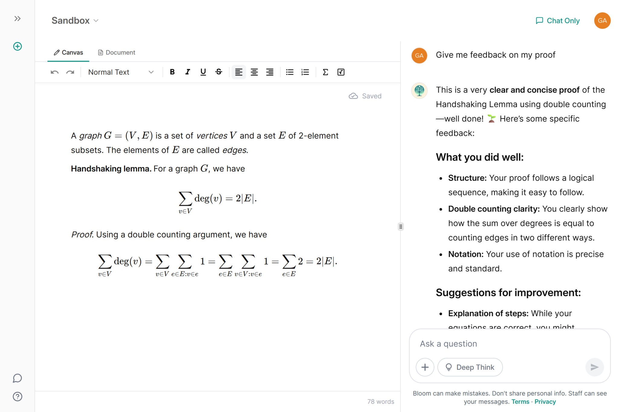 Work through problems on a blank canvas with Bloom by your side, guiding you step by step.