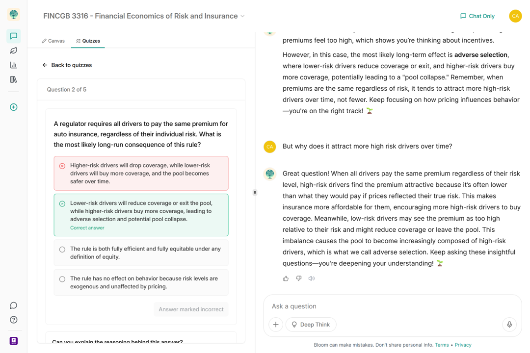Bloom doesn't just answer questions, it guides students through understanding, using evidence-based pedagogical techniques.